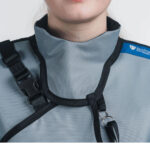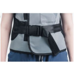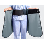 attaches via hook-and-loop to the vest’s back panel and includes protective slits to prevent scatter radiation.